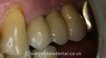 New bridge showing junction of bridge and natural gum.
